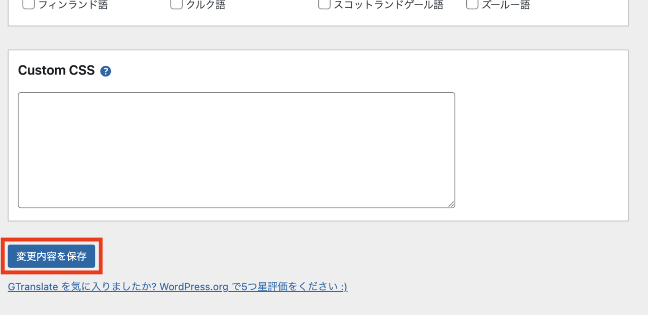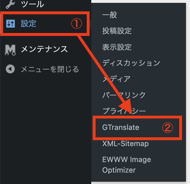 左側メニュー「設定」から「Gtranslate」をクリック