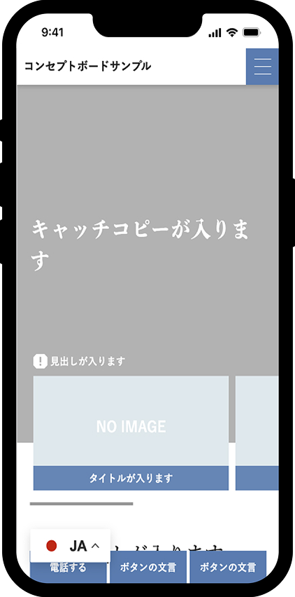2:ウィジェット表示「ドロップダウン付き国旗」 フローティング言語セレクタの表示: 「左下」